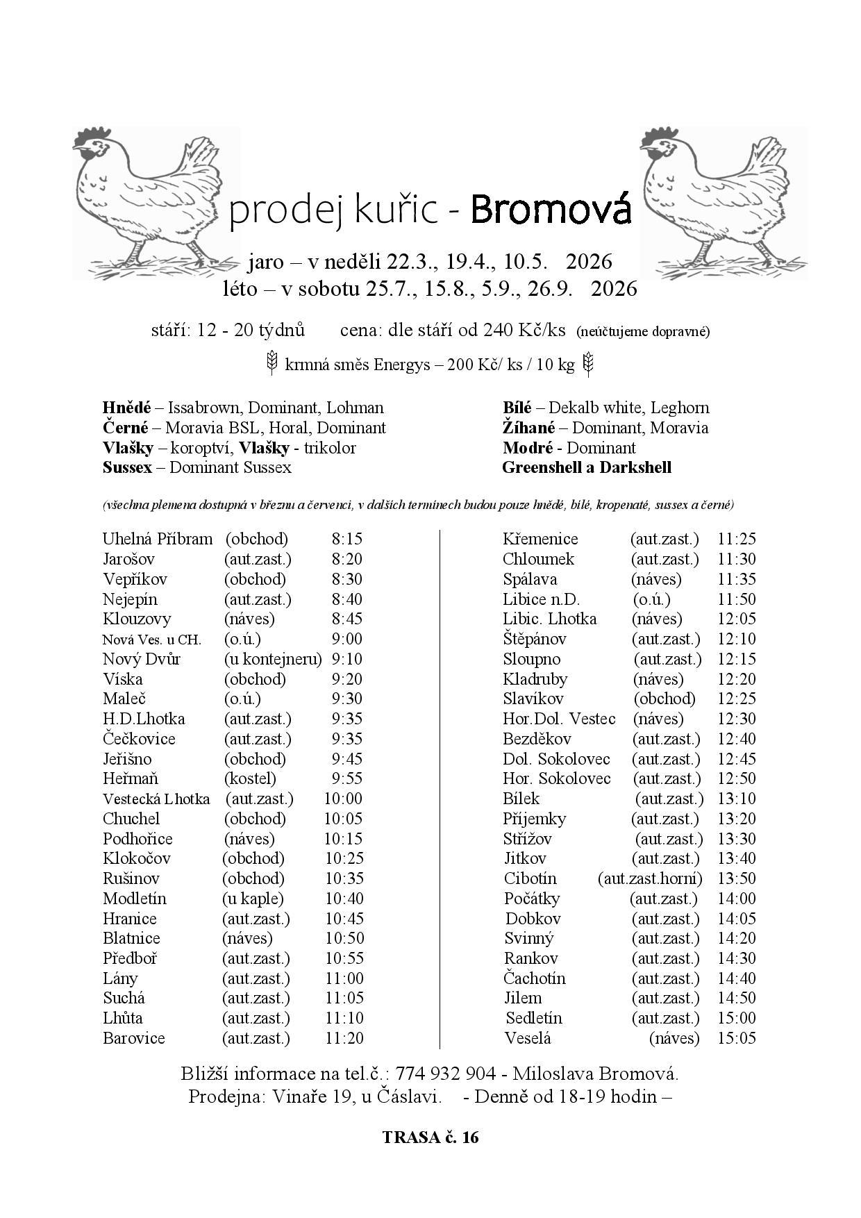 Nabídka kuřic Bromová
